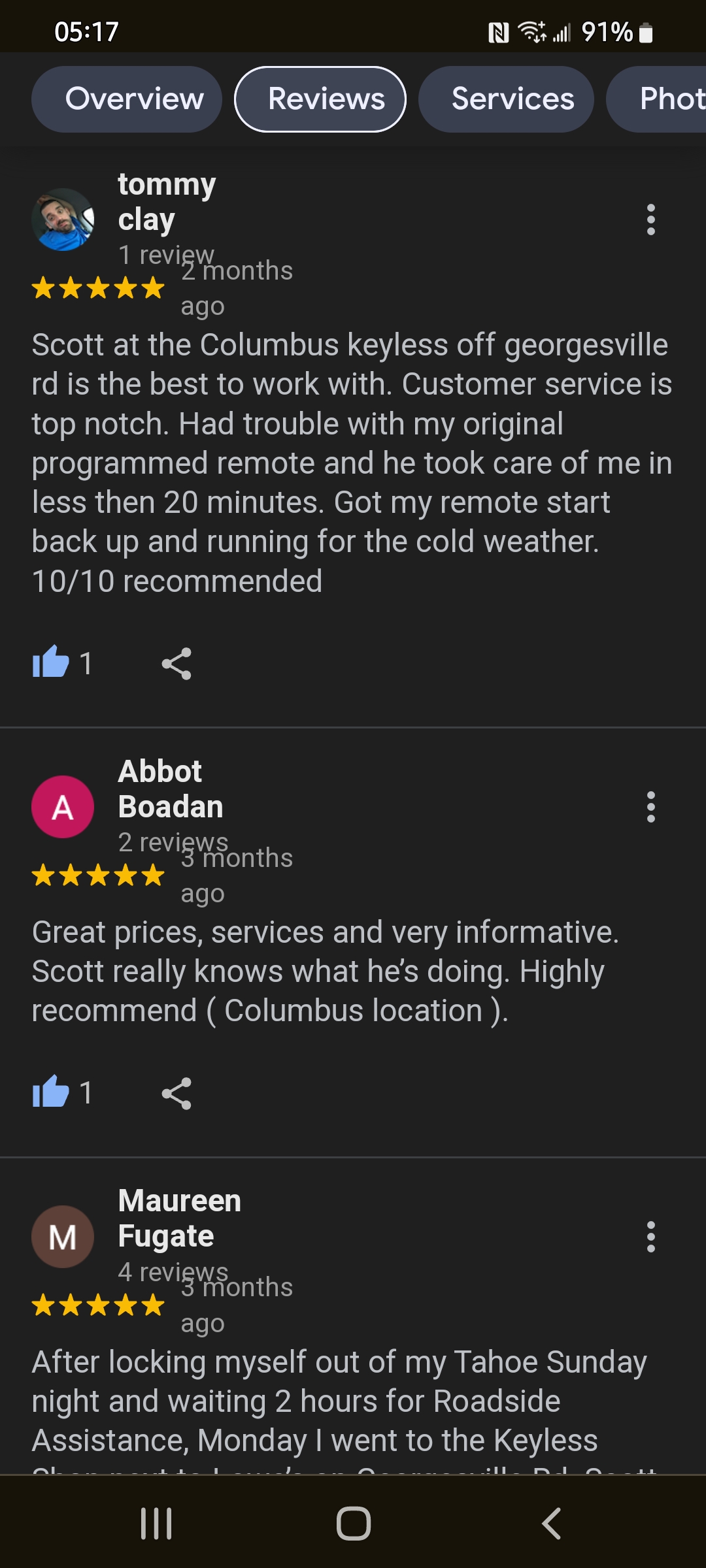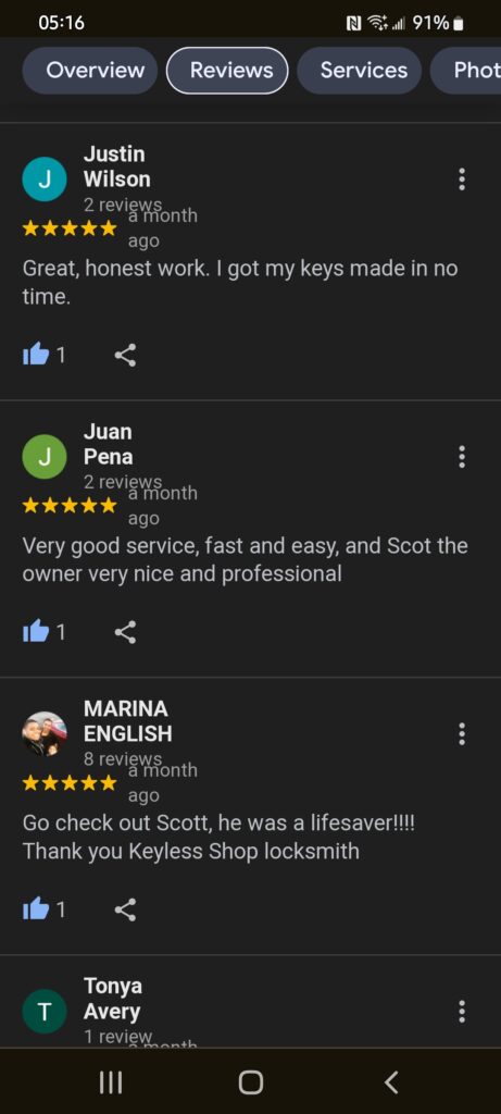 Customer reviews and testimonials from past locksmith projects